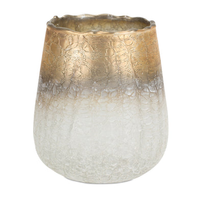 Gold and White Ombre Glass Vase Candle Holder 6"H
