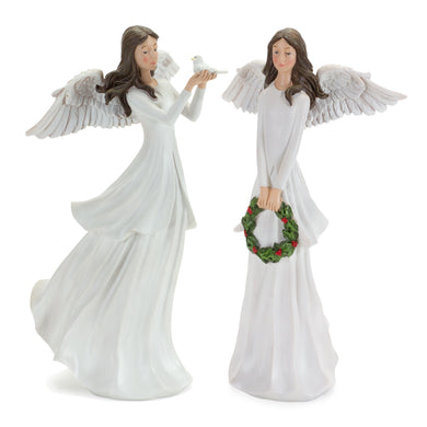 Winter Angel Figurine with Bird and Wreath Accent (Set of 2)