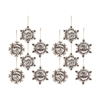 Wooden Snowflake Ornament with White Washed Finish (Set of 12)