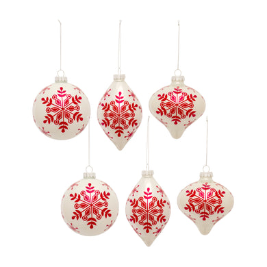 Glass Ball Ornament with Painted Bird Branch Design (Set of 6)