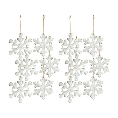 White Washed Wooden Snowflake Ornament (Set of 12)