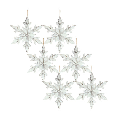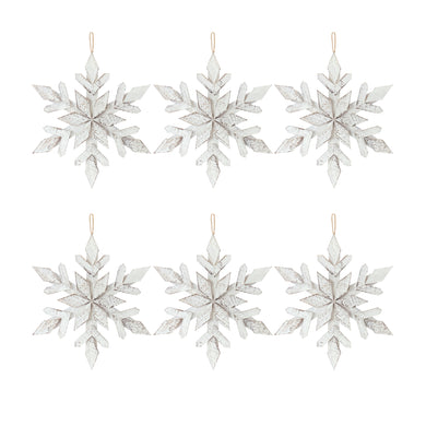 White Washed Wooden Snowflake Ornament (Set of 6)