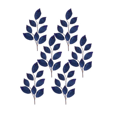 Navy Magnolia Leaf Spray with Bead Accent (Set of 6)