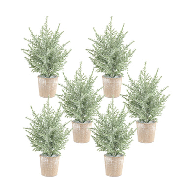 Flocked Holiday Pine Tree with Plastic Pot (Set of 6)