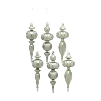 Sage Green Glass Finial Drop Ornament (Set of 6)