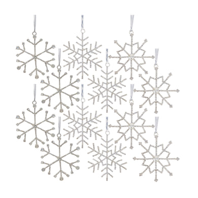 Jeweled Metal Snowflake with Ribbon Hanger (Set of 12)