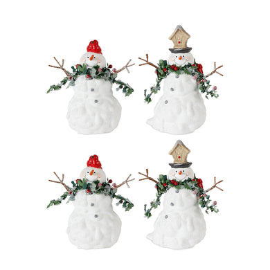 Frosted Square Snowman Family with Bird and Wreath Accent (Set of 3)