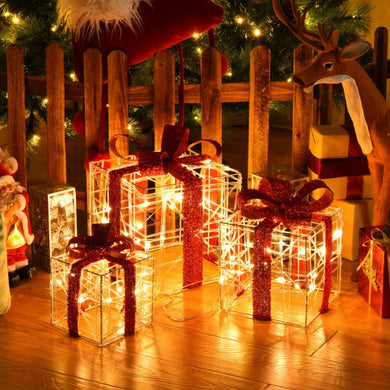 Set of 3 Christmas Lighted Gift Boxes Christmas Box Decorations with 60 LED Lights![]()  - Regular price