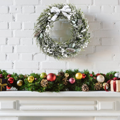 24 Inch Snowy Artificial Christmas PE Wreath with Pine Cones![]()  - Regular price