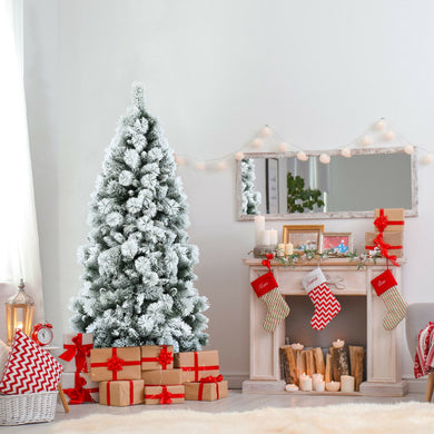 Snow-Flocked Hinged Artificial Christmas Pencil Tree with Mixed Tips-6.5 ft