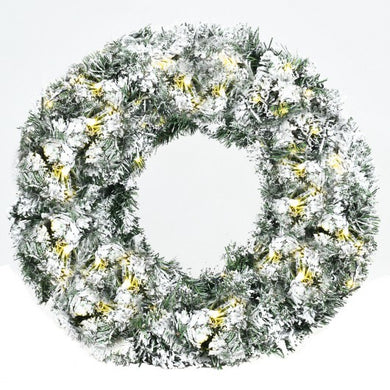 24" Artificial Snow Flocked Christmas Pine Wreath with LED Lights