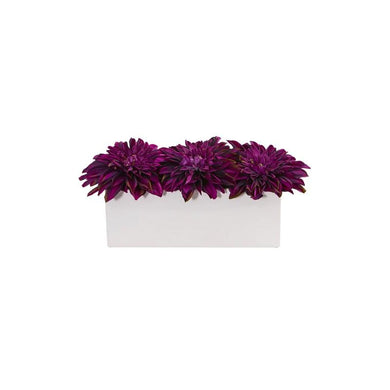 Dahlia and Fern Artificial Arrangement in Metal Goblet