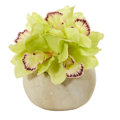 Cymbidium Orchid Artificial Arrangement in Stone Vase