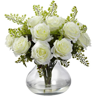 9" Rose Artificial Floral Arrangement in Elegant Glass Vase