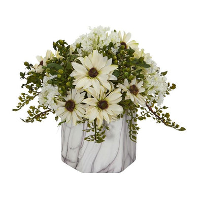 Mixed Flowers Artificial Arrangement in Metal Bowl