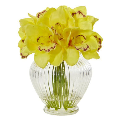 Cymbidium Orchid Artificial Arrangement In Glass Vase 1802-YL By Nearly Natural