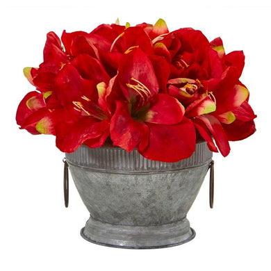 Amaryllis Arrangement in Vintage Bowl with Copper Trimming