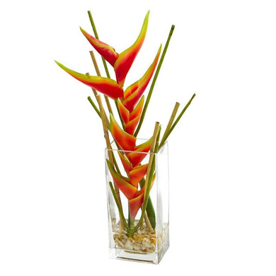 Tropical Bromeliad Artificial Arrangement in Glass Vase