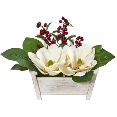Magnolias and Berries Artificial Arrangement in Chair Planter