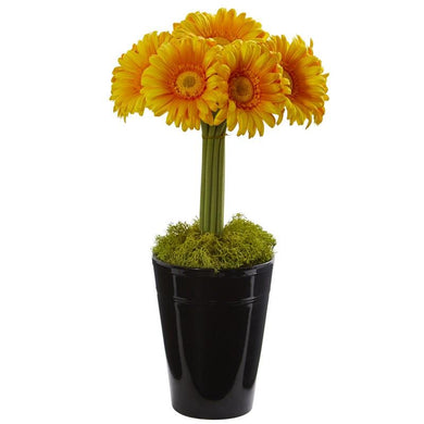 Sunflower Artificial Arrangement in Marble Finished Vase