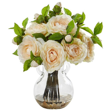 Roses and Mix Greens Artificial Arrangement in Metal Chalice