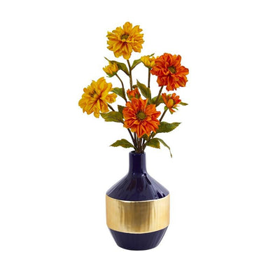 Zinnia Artificial Arrangement in Blue and Gold Designer Vase