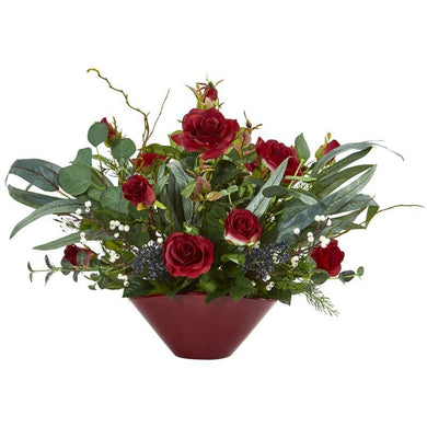 16" Rose and Eucalyptus Artificial Arrangement in Vase