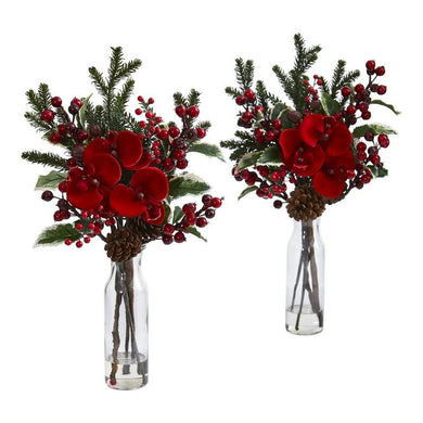 Holly Berry and Orchid Artificial Arrangement in Vase (Set of 2)