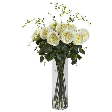 Cymbidium Orchid Artificial Arrangement in Tall Cylinder Vase