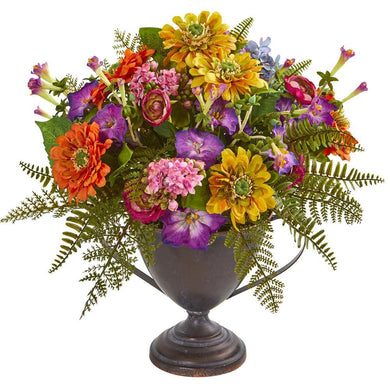 Mixed Floral w/White Wash Planter Silk Arrangement