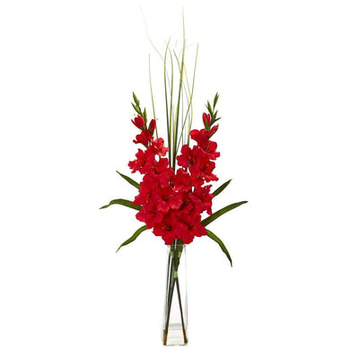 Red Phalaenopsis Orchid Artificial Arrangement in Gold Vase