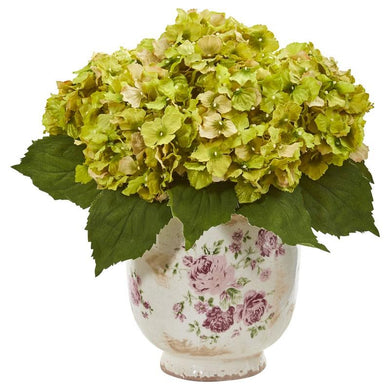 Giant Hydrangea Artificial Arrangement in Floral Printed Vase