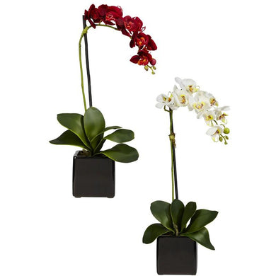 Phaleanopsis Orchid w/Black Vase Silk Arrangement (Set of 2)