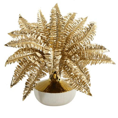 13" Golden Boston Fern Artificial Plant in Gold and Cream Elegant Vase