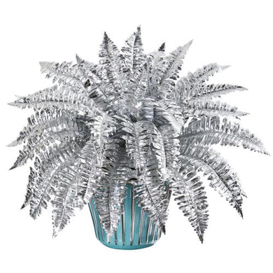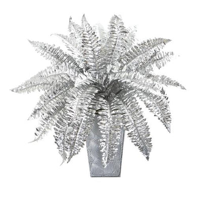 3'Metallic Silver Boston Fern Artificial Plant in Silver Planter