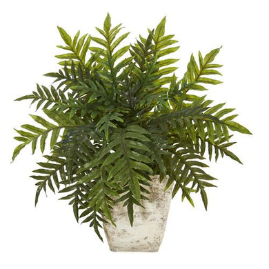 2'Hares Foot Fern Artificial Plant in Country White Planter (Real Touch)