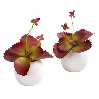 9" Succulent Artificial Plant in White Planter (Set of 2)