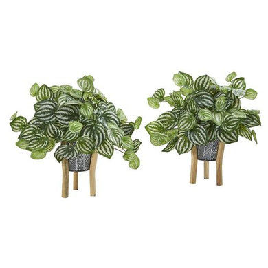 14" Watermelon Peperomia Artificial Plant in Tin Planter with Legs (Real Touch) (Set of 2)