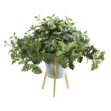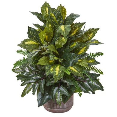 26" Mixed Greens Artificial Plant in Stoneware Planter