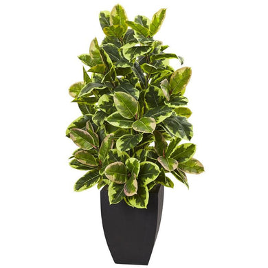 Rubber Leaf Artificial Plant in Marble Finished Vase (Real Touch)