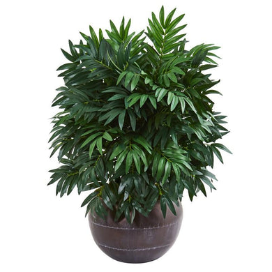 32" Bamboo Palm Artificial Plant in Metal Bowl