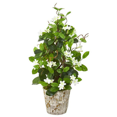 25" Stephanotis Artificial Climbing Plant in Weathered Planter