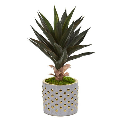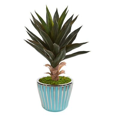 21" Agave Artificial Plant in a Turquoise Planter with Silver Trimming