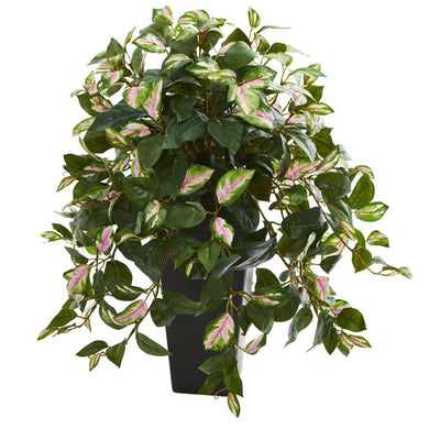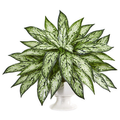18" Silver Queen Artificial Plant in White Pedestal