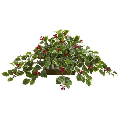 37" Variegated Holly Leaf Artificial Plant in Planter (Real Touch)