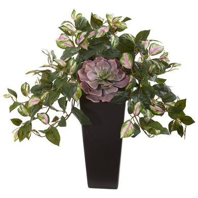 Echeveria and Wandering Jew Artificial Plant in Black Vase