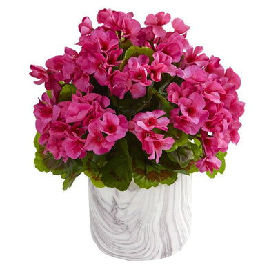 Geranium Artificial Plant in Marble Finished Vase UV Resistant (Indoor/Outdoor)