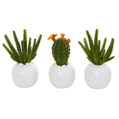 8" Cactus Succulent Artificial Plant in White Planter (Set of 3)