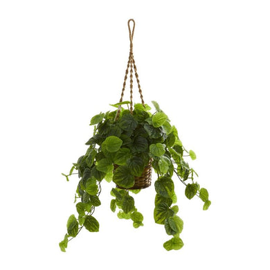 34" Peperomia Artificial Plant in Hanging Basket (Real Touch)