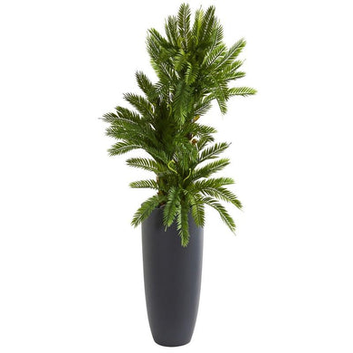 4.5' Triple Cycas Artificial Plant in Gray Planter